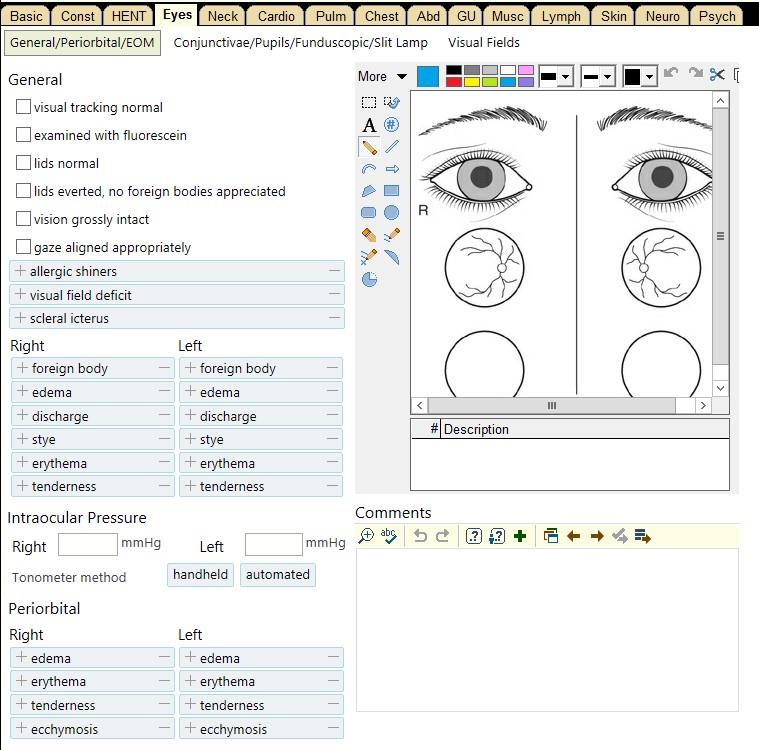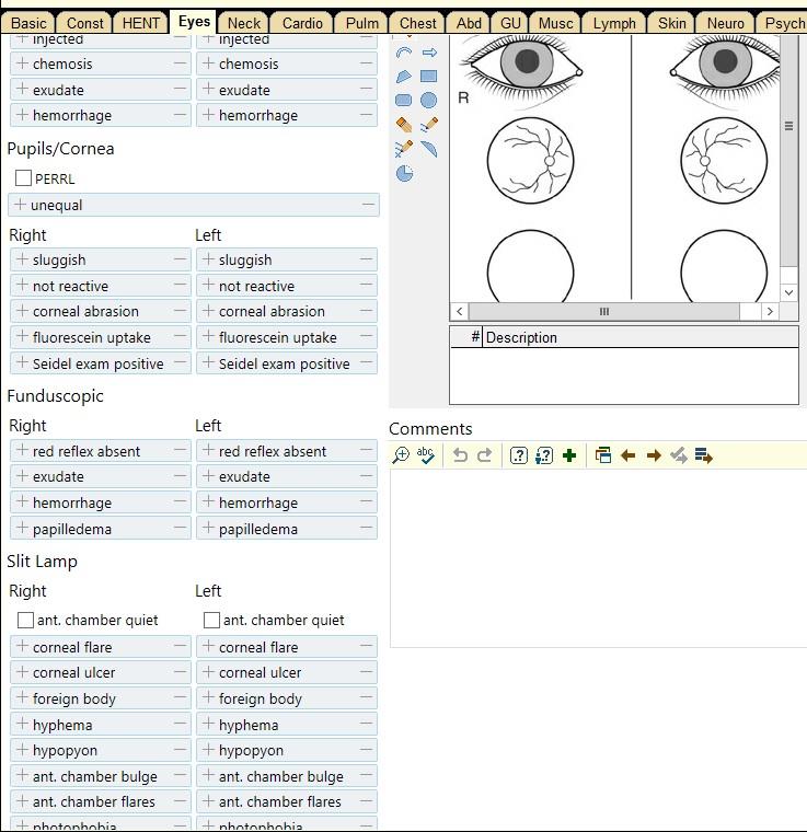 [ ] pupils equal / round [ ] reactive to light [ ] no icterus [ ] no conjunctival injection [ ] no papilledema |