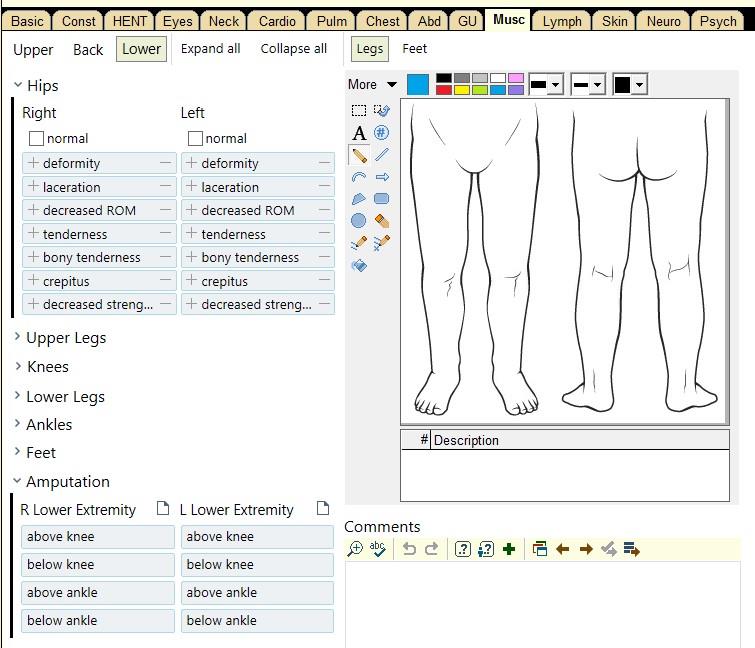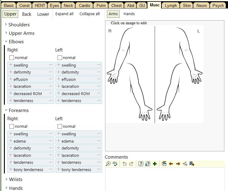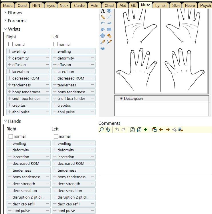 [ ] normal muscle tone / bulk [ ] normal range of motion upper extremity [ ] normal range of motion lower extremity [ ] no pronator drift _____/ S L upper extremity _____/ S R upper extremity _____/ S L lower extremity _____/ S R lower extremity |