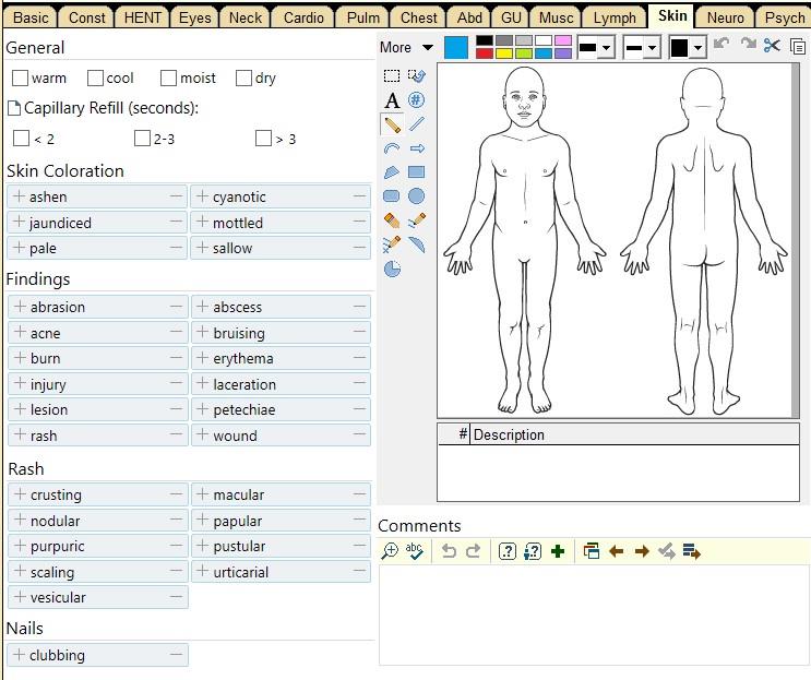 [ ] no scars [ ] no rashes [ ] no bruises [ ] no masses |