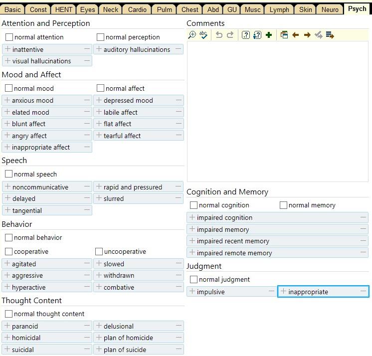 | Pulmonary | Abdominal | Genitourinary | Skin | Mental Status |