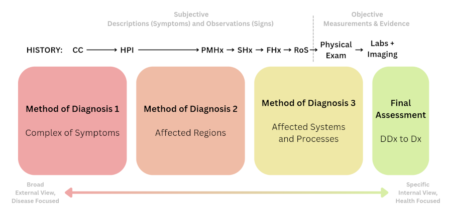 After the Physical Exam, we come to the use of Labs and other diagnostic tools like Imaging. The purpose of diagnostic tests is to remove doubt and build a stronger case. We are trying to transform our provisional DDx into a final Diagnosis (Dx) in preparation for Treatment (Tx).